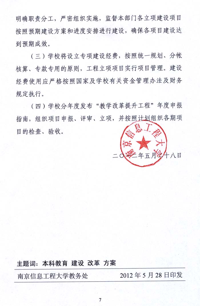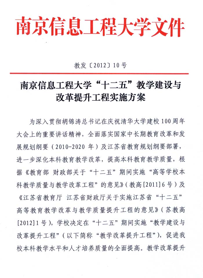 南京信息工程大学“十二五”教学建设与改革提升工程实施方案