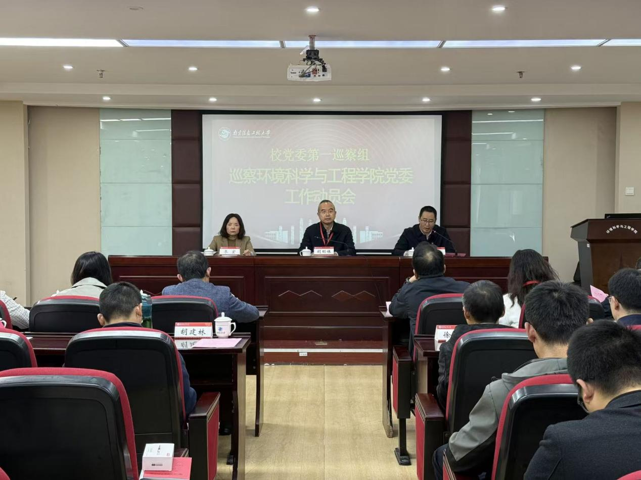 校党委巡察办公室常务副主任宋金暖,校党委第一巡察组人员出席动员会。环境科学与工程学院党政领导班子成员,科级干部,系(室)负责人,党支部书记,教职工及学生代表参会。