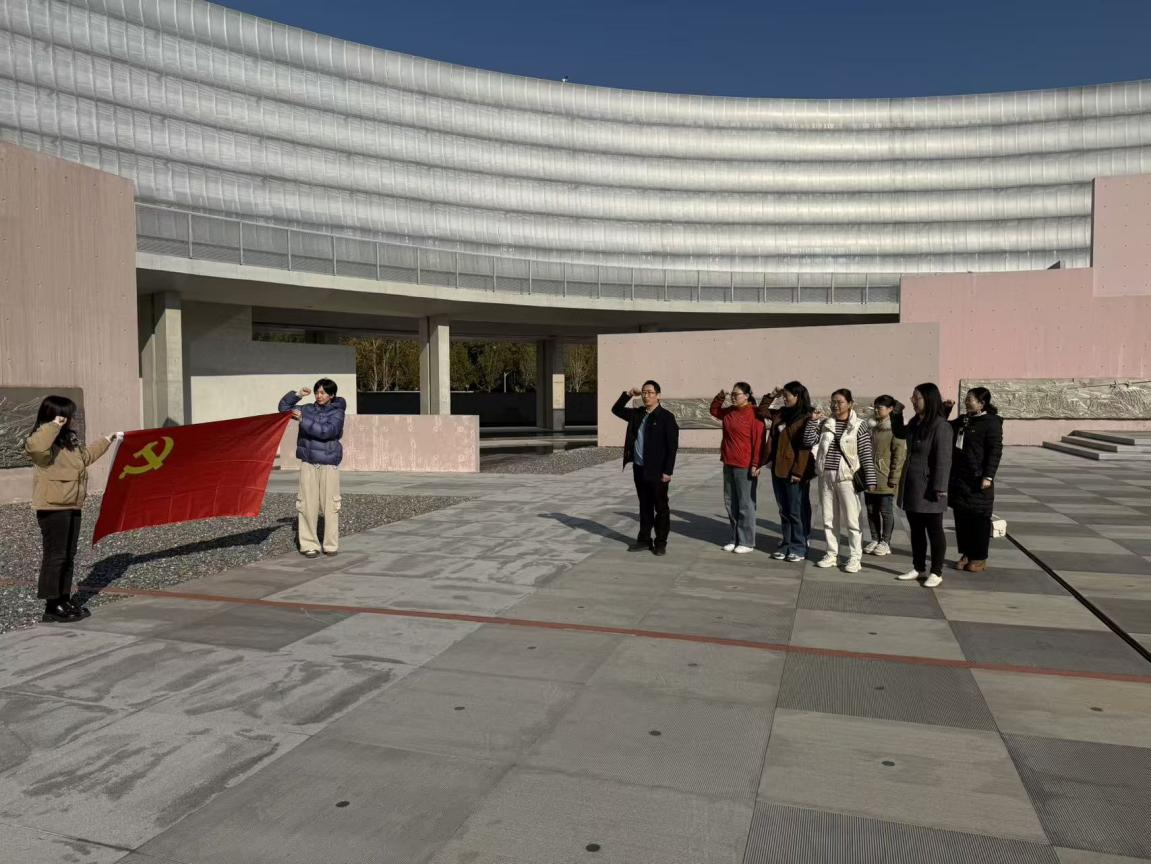 活动首站,支部党员集体抵达南京宪法公园。作为全国首个多功能宪法主题公园,该公园于2022年被国家司法部授予“全国法治宣传教育基地”称号,其庄重的环形建筑布局与系统的展陈内容相得益彰,深刻传递着宪法的至高权威与根本地位。在参观前的宪法宣誓广场,学院党委书记屈家安带领全体党员高举右拳,重温入党誓词,铮铮誓言彰显着党员们坚守法治信仰、践行初心使命的坚定决心。