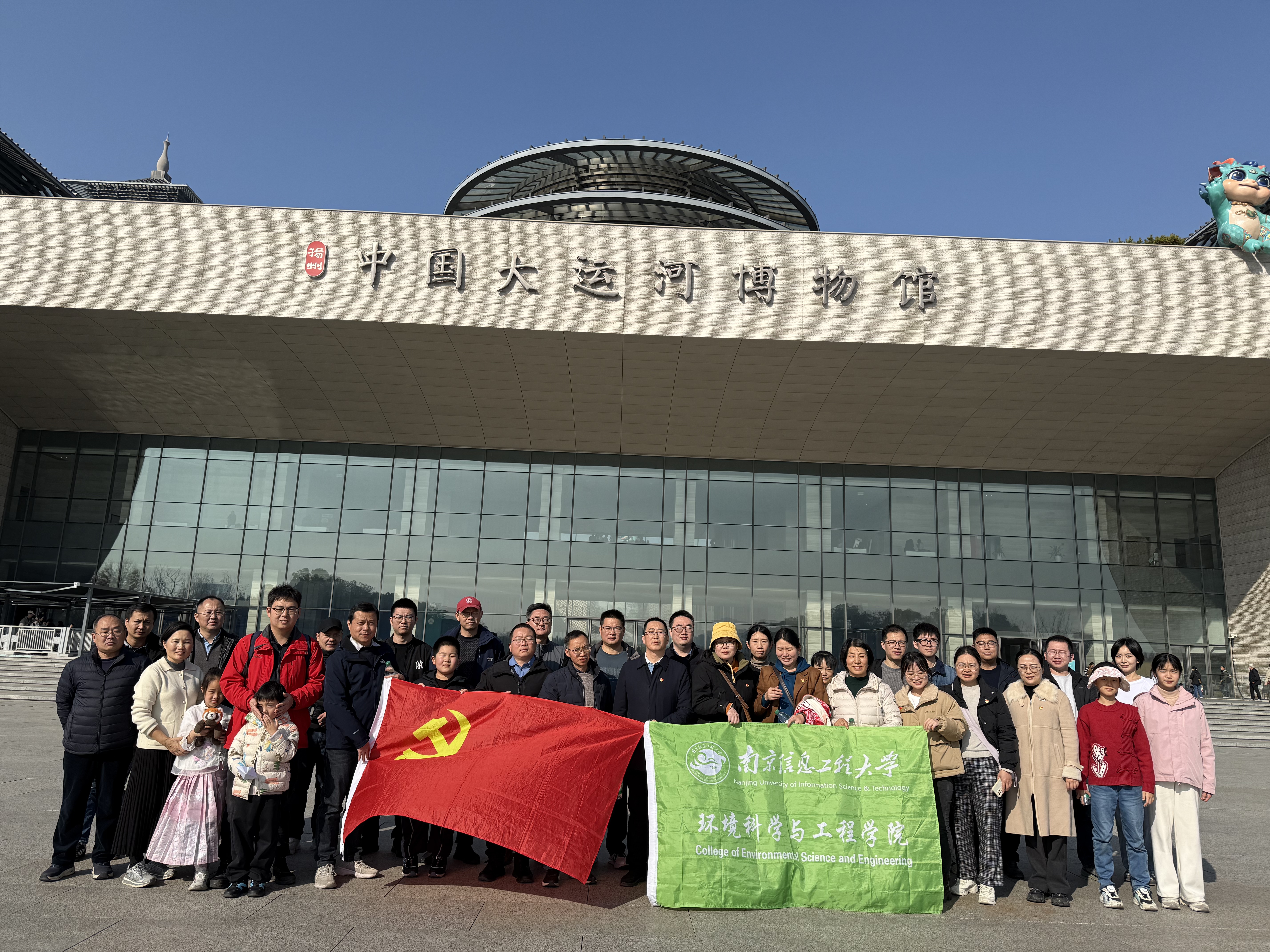 党日活动第三站,环科院党员队伍走进中国大运河博物馆,开启别开生面的 “生态现场课”。在 “大运河 —— 中国的世界文化遗产” 展厅,25.7 米长的汴河州桥遗址河道剖面、仪征拦潮闸淤积截面等 “重量级” 展品,直观呈现了大运河千年水系变迁与生态演化;在 “运河湿地寻趣” 专题展,党员们通过互动体验了解运河湿地的生态涵养功能,学习古人治水护水的智慧。学院环境生态工程系党员教师结合展陈内容,现场为大家解读大运河生态修复、文化遗产保护与生态旅游融合的实践案例,将专业知识融入文物背后的生态故事,让党员们在研学中深化了 “绿水青山就是金山银山” 的理念认知,提升了将专业所学服务于生态保护的实践自觉。